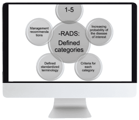 The American College of Radiology Reporting and Data Systems (RADS) standardize the lexicon and assessment criteria for various disease processes. With special emphasis on applied applications, this Online Course offers a comprehensive review of various -RADS, including thyroid, chest, and abdomen fundamentals, allowing for systematic diagnoses of lung, liver, colon, prostate, thyroid, and ovarian cancers.