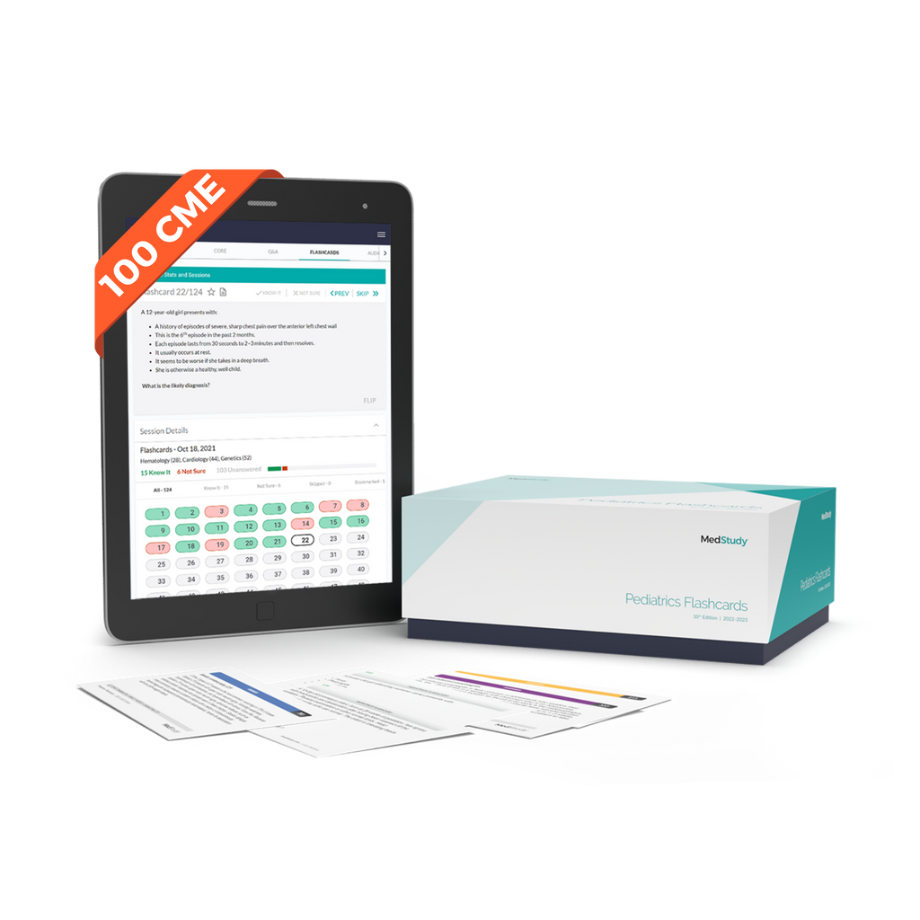 Fully reviewed and updated. Use our collection of 1,000+ MedStudy Pediatrics Flashcards as a fun way to exercise recall of diseases, syndromes, and fundamental facts. This set of flashcards is up-to-date, clear, and board-focused. Get exactly what you need to know—no more, no less.